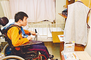 心配をよそに、賢司君は学園の生活に少しずつ溶け込んだ。事故に遭う前から変わらない明るい性格は、学園でも健在。同部屋の生徒に得意のだじゃれを言って笑わせ、授業を終えてから過ごすデイルームではおやつを食べながら職員とおしゃべりする。