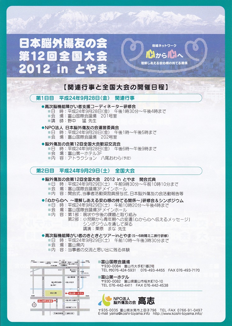 NPO法人脳外傷友の会高志協力のドキュメンタリー映画上映会のお知らせ