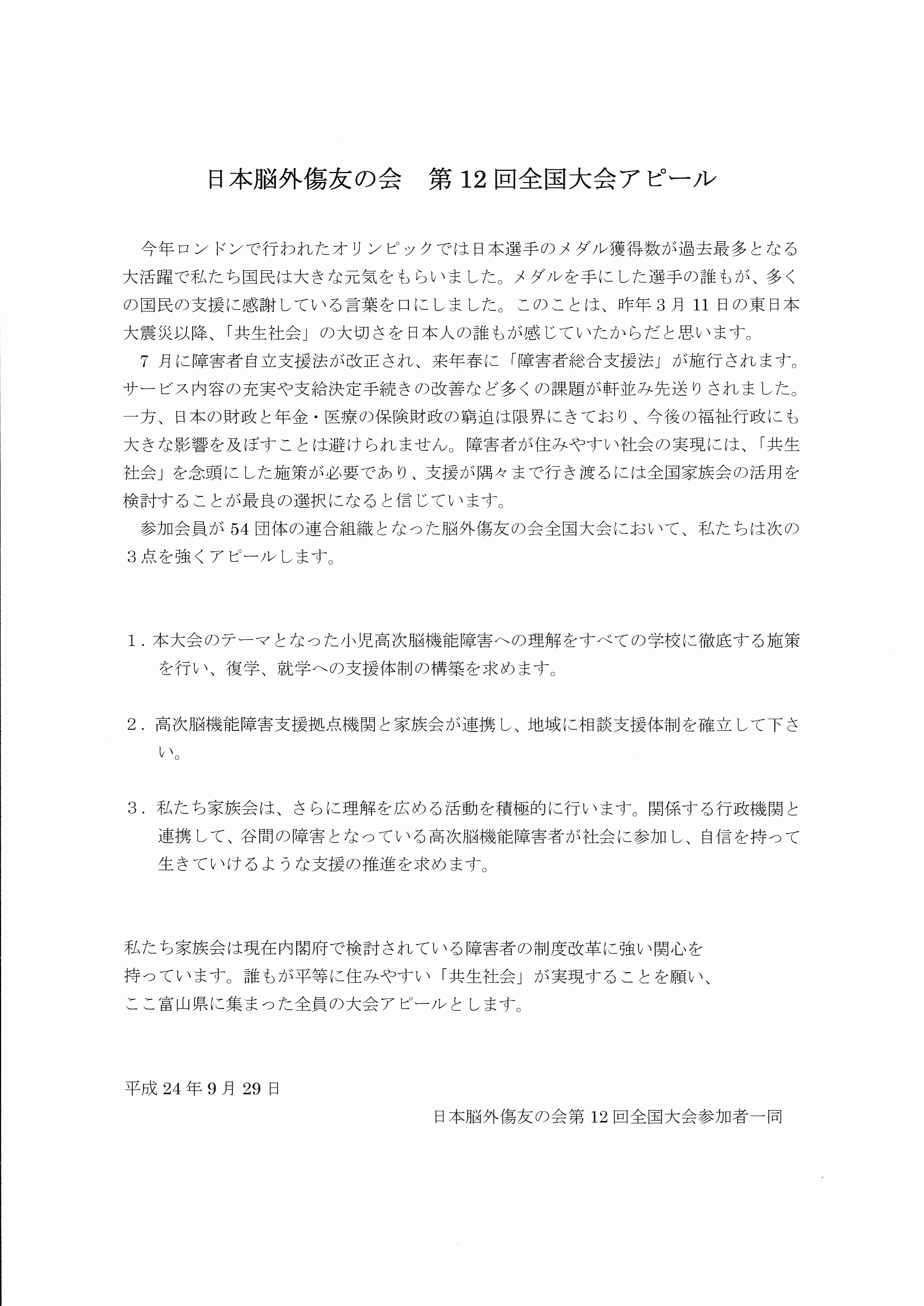 したいと思っています。また、この機会に、富山県内に暮らす重度心身障がい者(児)のことを身近に感じ、理解