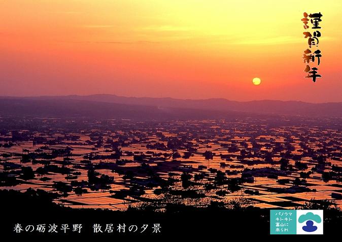 夕日を浴びて黄金色に光っているのが水田です。