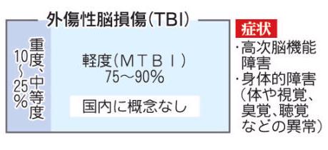 C)の報告(03年)によると、年150万人がTBIと診断され、うち75%がMTB