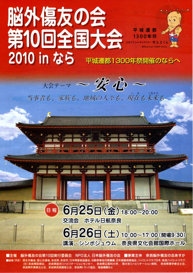 『脳外傷友の会 第10回全国大会』が開催されます。