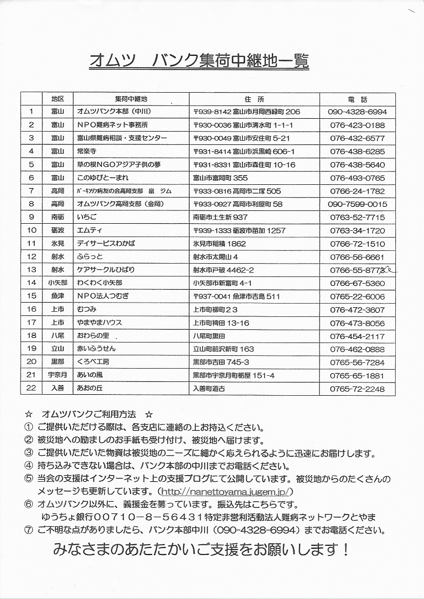 おやぢも関わっている「難病ネットワークとやま」が始めた