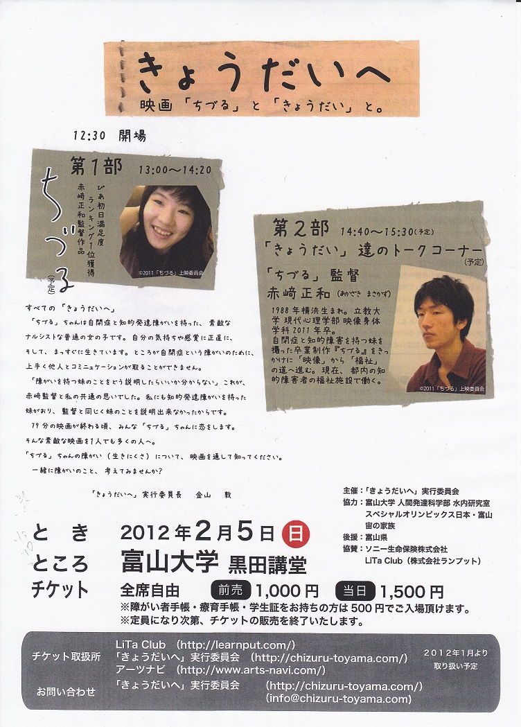 NPO法人脳外傷友の会高志協力のドキュメンタリー映画上映会のお知らせ