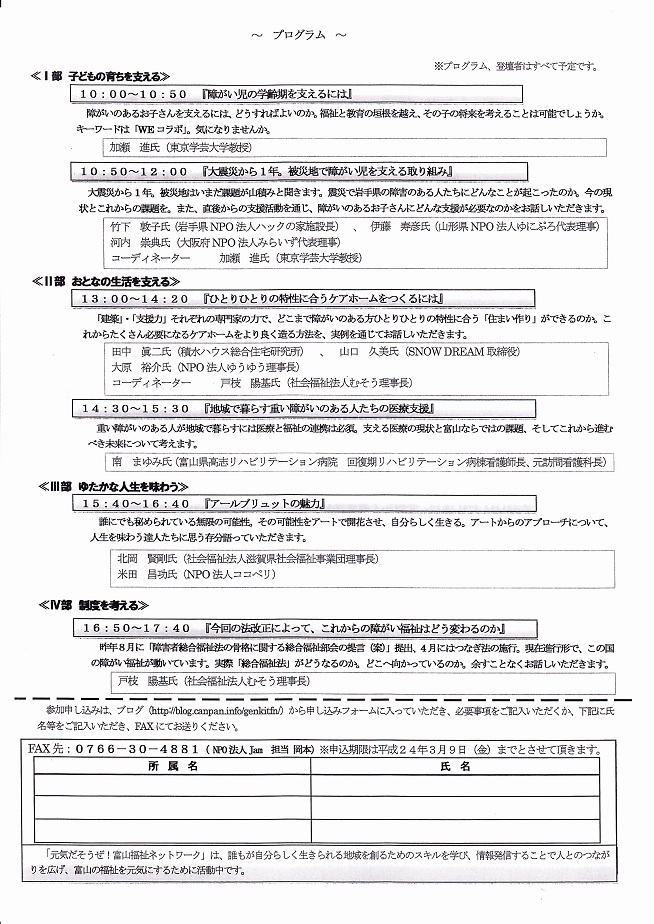 したいと思っています。また、この機会に、富山県内に暮らす重度心身障がい者(児)のことを身近に感じ、理解